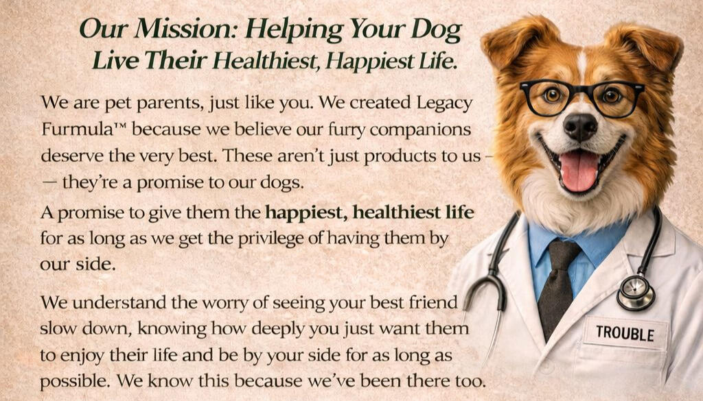 Who This Formula Is For:Legacy Furmula™ Hip + Joint Power Formula is designed for dogs who need daily support for mobility, flexibility, and joint comfort — including aging dogs, active dogs, and dogs with early signs of stiffness.* Not intended for puppies or dogs with known sensitivities unless approved by your veterinarian. For animal use only. Consult your veterinarian before use, especially if your pet has a medical condition or is taking medication.