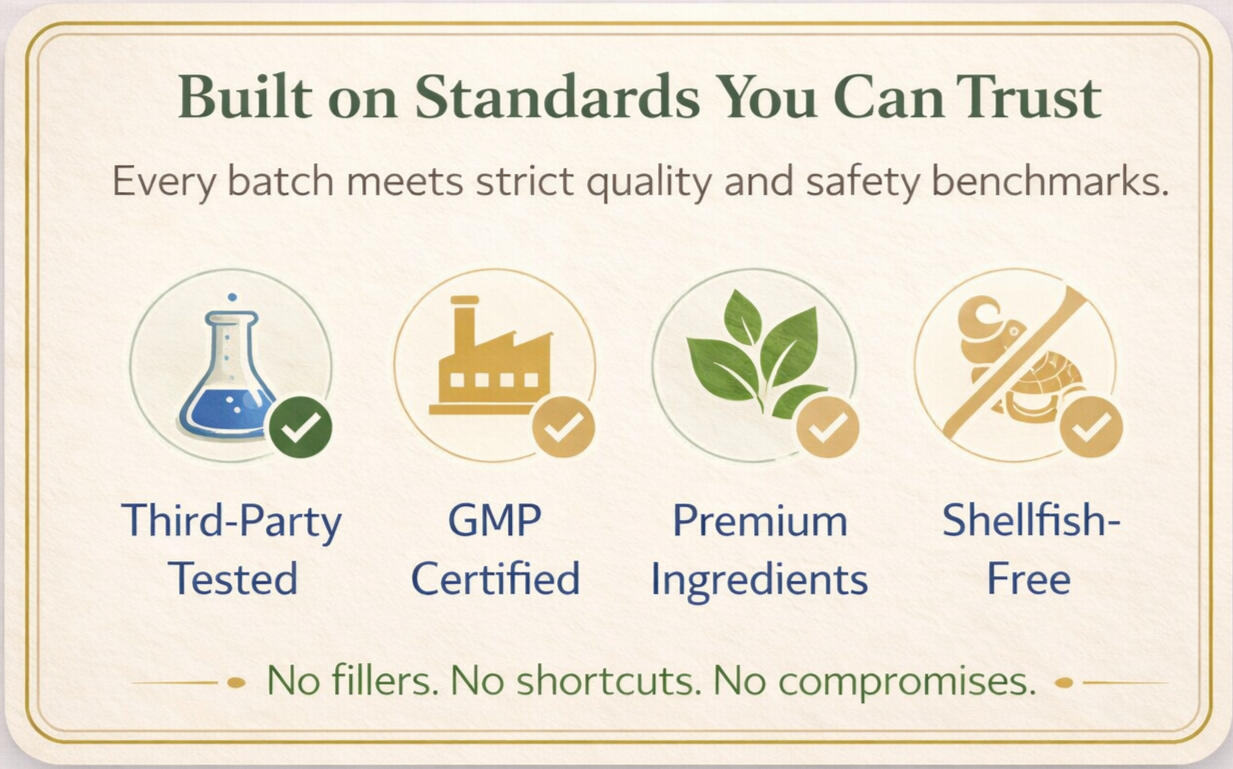 Uses plant-based, shellfish-free ingredients designed for long-term daily use.Many joint supplements rely on shellfish-derived or synthetic isolates.